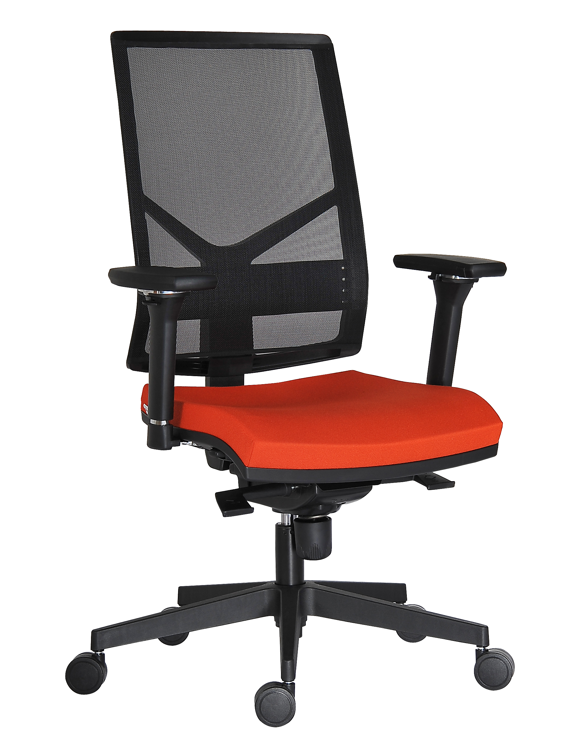 Kancelářská židle, opěrák se síťovinou a výškově nastavitelnou bederní výztuhou, možnost nastavené výšky opěráku s uzamykáním. Sedák se studenou pěnou. Synchronní mechanismus s pětinásobnou aretací. Možnost plynulé proměny úhlu sedáku a opěráku. Plastová báze. AR 40 výškově stavitelné područky s měkkou dotykovou plochou. Kolečka s větším průměrem. Nostnost 130 kg. Záruka 60 měsíců. Český výrobek.