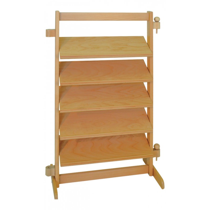 Dětský paravan vyrobený z kvalitního dřeva s pěti policemi pro odkládání knížek. Police jsou na spodním okraji zakončeny zarážkou. Paravan lze jednoduše spojit s libovolným jiným paravanem pomocí páru spojek.