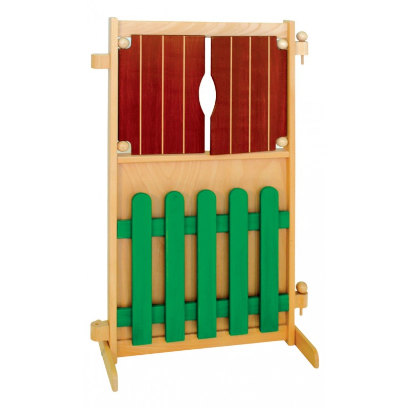 Dětský paravan vyrobený z kvalitního dřeva imitující dvoukřídlé okno. To lze jednoduše otevírat. Spodní část paravanu imituje dřevěný plot. Paravan lze jednoduše spojit s libovolným jiným paravanem pomocí páru spojek.