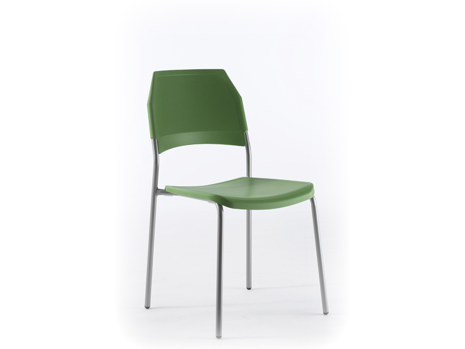 Stohovatelná jídelní židle s plastovým sedákem v 6 různých barvách. Nosnost 100kg