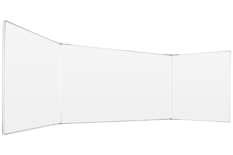 - Kombinace ploch – zavřená tabule pro popis fixem (bílá), otevřená tabule křídla pro popis fixem (bílá) a střed matný projekční povrch pro promítání a popis fixem (bílá).
