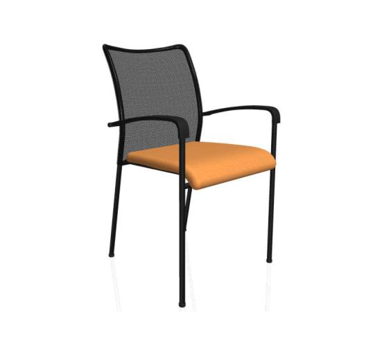 Moderní stohovatelná konferenční židle s opěrákem opatřeným černou prodyšnou síťovinou. Při očalounění sedáku zdravotnickou koženkou je vzhledem ke snadnému hygienickému udržování židle vhodná pro použití ve zdravotnických zařízeních.