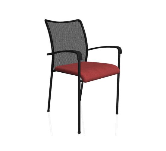 Moderní stohovatelná konferenční židle s opěrákem opatřeným černou prodyšnou síťovinou. Při očalounění sedáku zdravotnickou koženkou je vzhledem ke snadnému hygienickému udržování židle vhodná pro použití ve zdravotnických zařízeních.