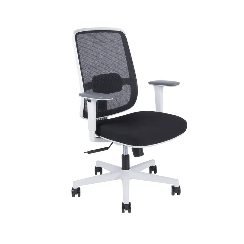 Stabilní kancelářská židle se synchronním mechanismem, kterým měníte současně náklon opěráku i sedáku.