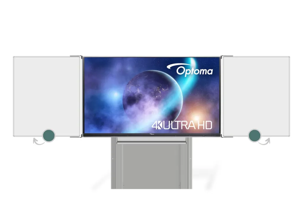 Interaktivní sestava na stojanu zvedacím AL IAS - LCD panel s úhlopříčkou 75" nebo 86" do 65 kg a keramická tabulová křídla pro popis křídou nebo fixou.