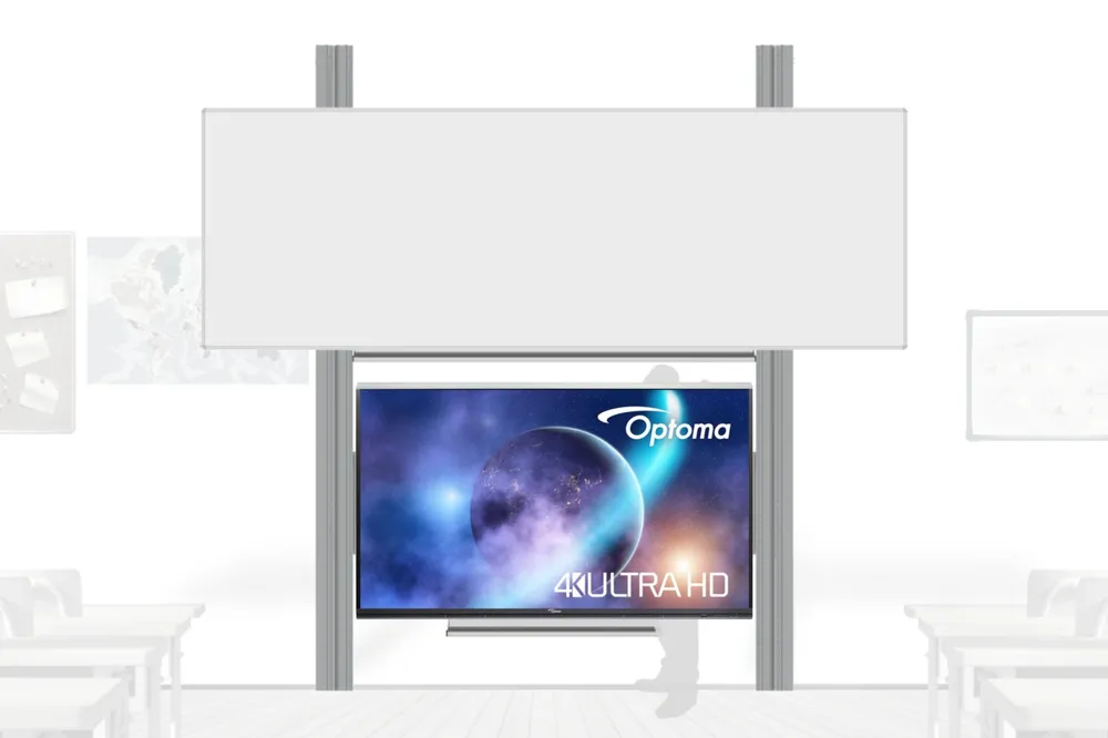 Interaktivní sestava na zvedacím systému PYLON AL - LCD 65", 75" nebo 86" s doplňkovou tabulí a přední krycí tabulí.