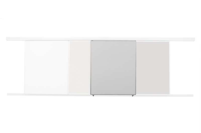 Bílá magnetická tabule na fix určená pro lištový systém s horizontálním posunem.
