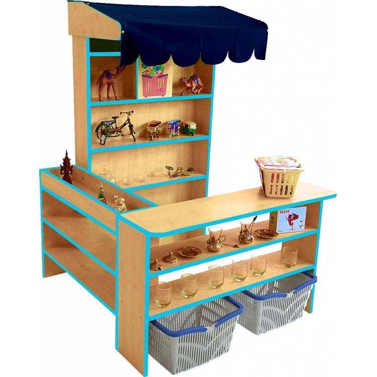 Oblíbený dětský obchod s nabídkovým pultem se zakulacenými rohy pro bezpečnější hru dětí.