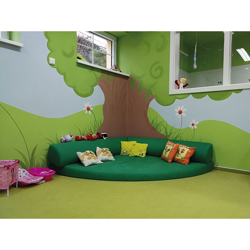 Molitanový odpočinkový a hrací roh potažen antialergickým materiálem, který je snadno udržovatelný.
