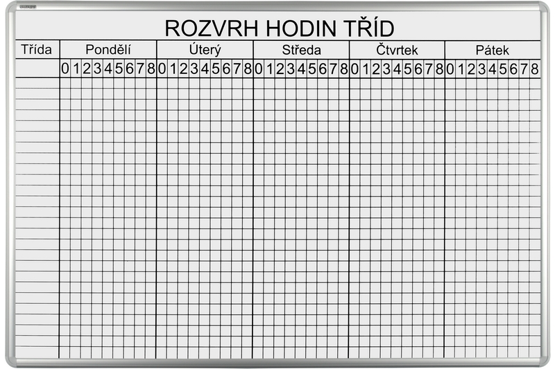 - Magnetická tabule s rastrem pro rozvrh hodin.