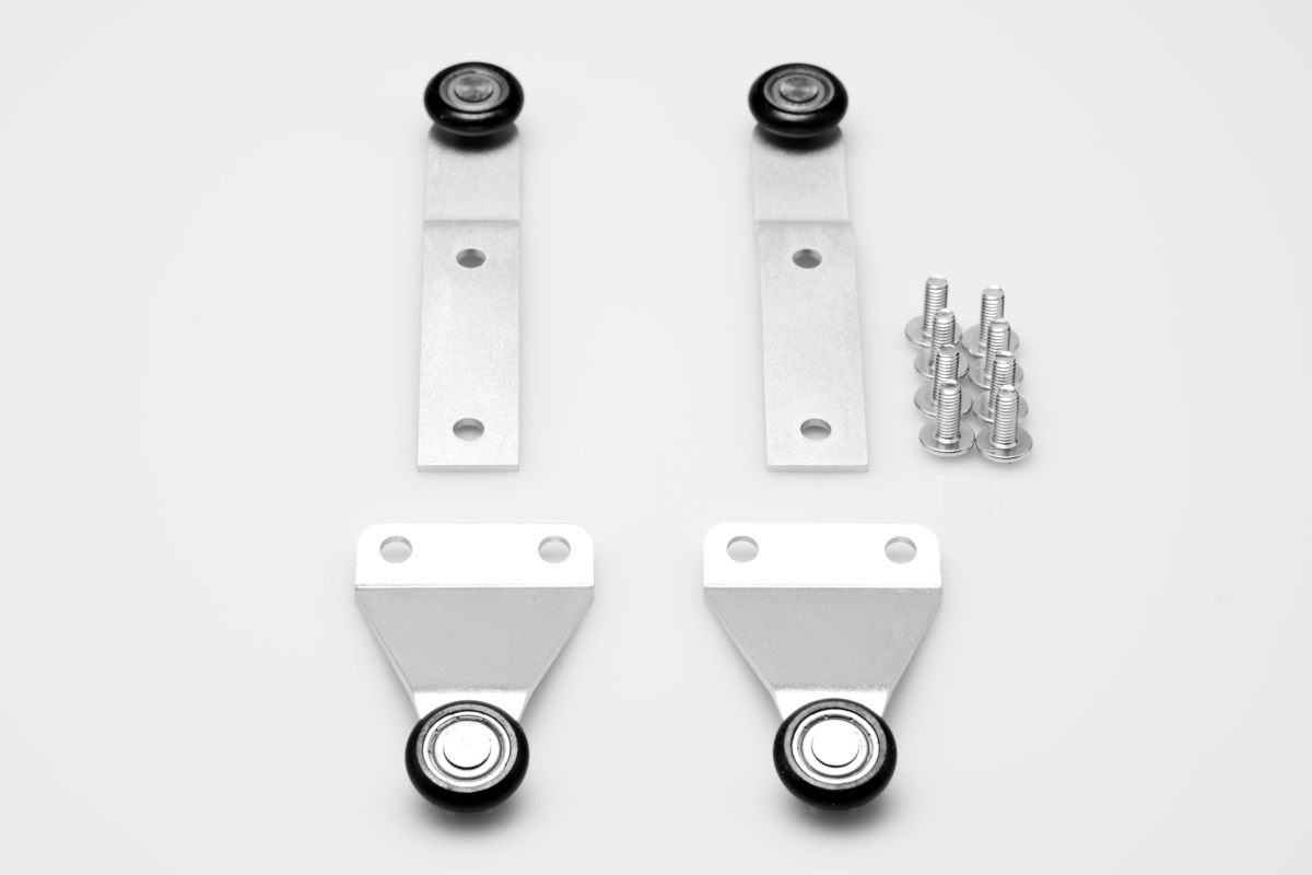 - Sada závěsů pro uchycení tabulí a nástěnek do vnějšího pojezdu lištového systému.